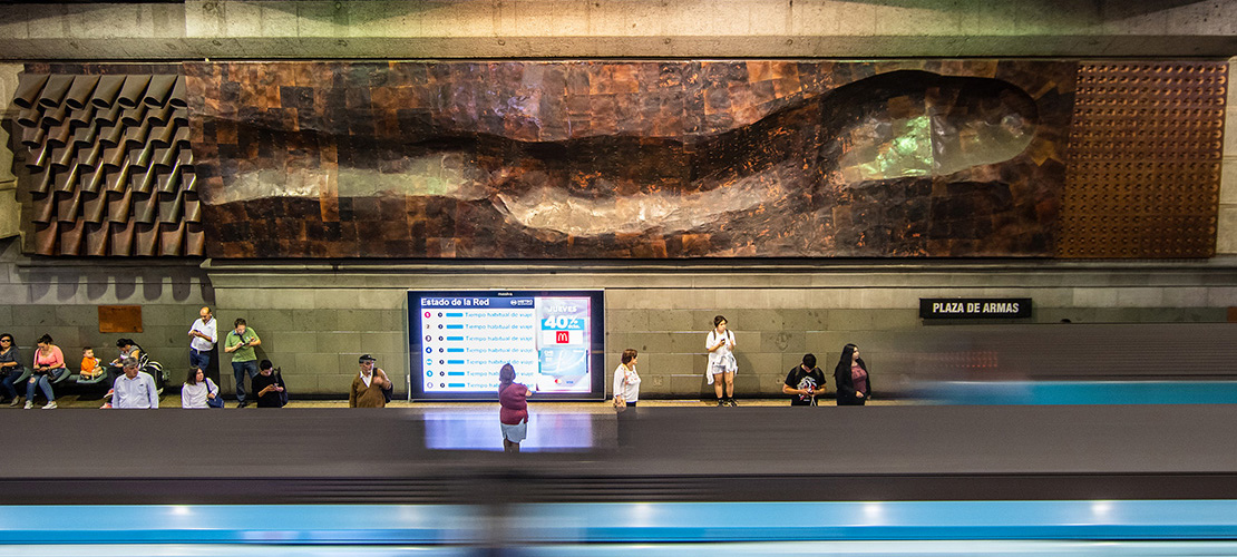 Uno de sus hitos en el espacio público es el mural escultórico en cobre de la estación Plaza de Armas del Metro de Santiago (2005), obra con la que obtuvo el primer lugar en el concurso escultórico de la Empresa Nacional Codelco.