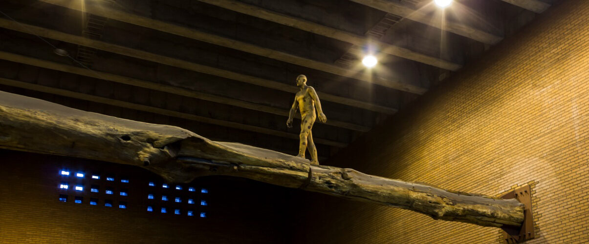 Este nuevo enfoque se manifiesta en una de sus esculturas más emblemáticas, “El Puente” (1999), que se extiende a lo largo de 15 metros en la estación Santa Ana del Metro de Santiago. Creada en coigüe valdiviano y ciprés, la obra representa la figura humana en tránsito, actuando como “vehículo para articular relatos que sugieren metáforas sobre la existencia, interpelan el presente y aprovechan las condiciones del emplazamiento de manera muy específica”, escribió el artista y crítico de arte César Gabler sobre esta escultura.