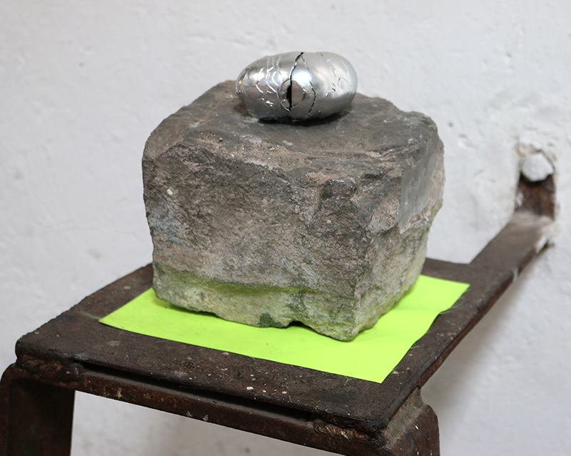 La calle es la principal referencia y centro de investigación artística de Edwards, quien se enfoca en la imagen en negativo de objetos encontrados en la ciudad. Su metodología de trabajo implica la recolección de materiales orgánicos y artificiales, que luego transforma en arte. “Recolecto materiales orgánicos y desechos industriales, los cuales uso como matrices para generar otros trabajos. Esta relación simbólica entre lo artificial y lo orgánico me interesa mucho”, explica. Sus obras a menudo presentan una paleta de colores inspirada en la señalética vial, utilizando tonos como el amarillo y el negro, lo que remite tanto al contexto urbano como al lenguaje de la abstracción.