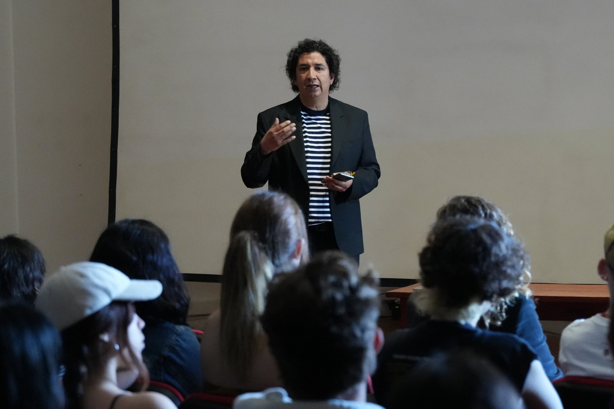 En su visita a la Universidad Finis Terrae, Andrés Duprat sostuvo una conversación con el artista visual y académico de la Facultad de Artes UFT Víctor Pávez en torno a la gestión de instituciones culturales, los procesos curatoriales y el trabajo audiovisual asociado a la serie Bellas Artes. Duprat, director del Museo Nacional de Bellas Artes de Buenos Aires y guionista de dicha producción.