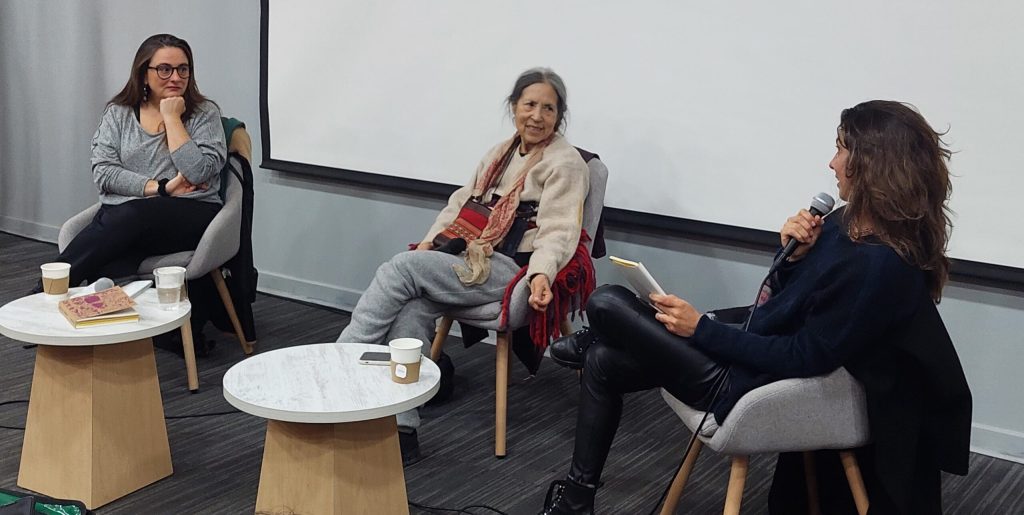 Uno de los momentos más íntimos entre la artista y los asistentes, fue cuando Cecilia Vicuña habló sobre la espiritualidad y cómo esta influye en la conexión que se crea entre las personas. “Varias han mencionado la palabra espiritualidad, lo cual es fantástico. Si una persona lo menciona, es normal, pero lo hacen cinco, esto indica un cambio de paradigma. La espiritualidad siempre es un arma de doble filo, pero nos constituye y nos hace ser”.