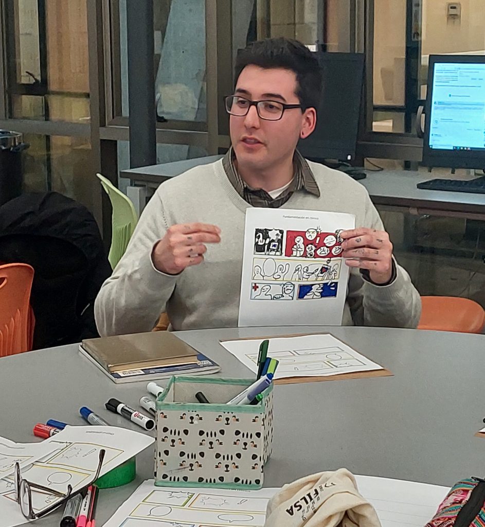 La última sesión de cada taller fue presencial e incluyó una serie de actividades dinámicas: presentaciones creativas, fundamentación de iniciativas en formato cómic y trabajos en grupo. Ejercicios prácticos para fortalecer la colaboración y el intercambio de ideas entre los participantes. Durante esta jornada, el módulo de estudiantes y egresados presentó sus proyectos en el co-work de la casa central, mientras que el módulo de académicos lo hizo en el salón de reuniones de la Vricad.