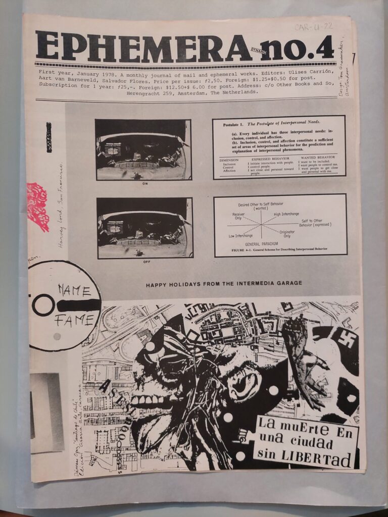 En Países Bajos, la Dra. Andrade profundizó su investigación en el Archivo De Appel en Ámsterdam, centro de arte contemporáneo que se dedica a la investigación y presentación de las artes visuales actuales. “Pude estudiar materiales muy valiosos, la mayoría de ellos de escasa o nula existencia en colecciones de América Latina, especialmente de artistas como Endre Tót, Maurizio Nannucci, Alison Knowles, Ulises Carrión y George Maciunas”, especificó Megumi Andrade Kobayashi.