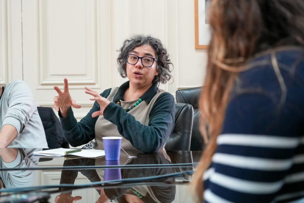 Las académicas Dra. Pia Acevedo y Cecilia Baes, directora del Magíster en Patrimonio y Conservación, junto al Dr. Gonzalo Carrasco, propusieron visibilizar el inventario de obras de arte presentes en el campus mediante un catálogo digital razonado. Además, sugirieron reforzar la vinculación institucional con su entorno de Providencia, organizando recorridos urbanos por los barrios cercanos para conectar a los estudiantes con el patrimonio y el territorio presentes en la comuna.
