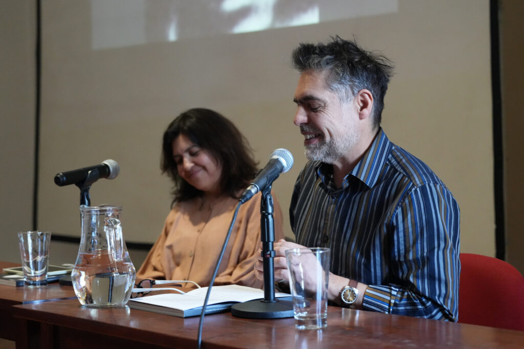 Barría ofreció una reflexión sobre el contenido de la revista, destacando la organización “heterocrónica” de los textos, que exploran la violencia desde distintas perspectivas, tanto políticas como sociales. El dramaturgo se detuvo especialmente en los artículos de Maria Grazia Muscatello sobre la participación chilena en la Bienal de Venecia de 1973 y destacó las entrevistas a las artistas escénicas Alexandra von Hummel y Stephie Bastías como contrapunto generacional sobre las precariedades y desafíos del teatro nacional.
