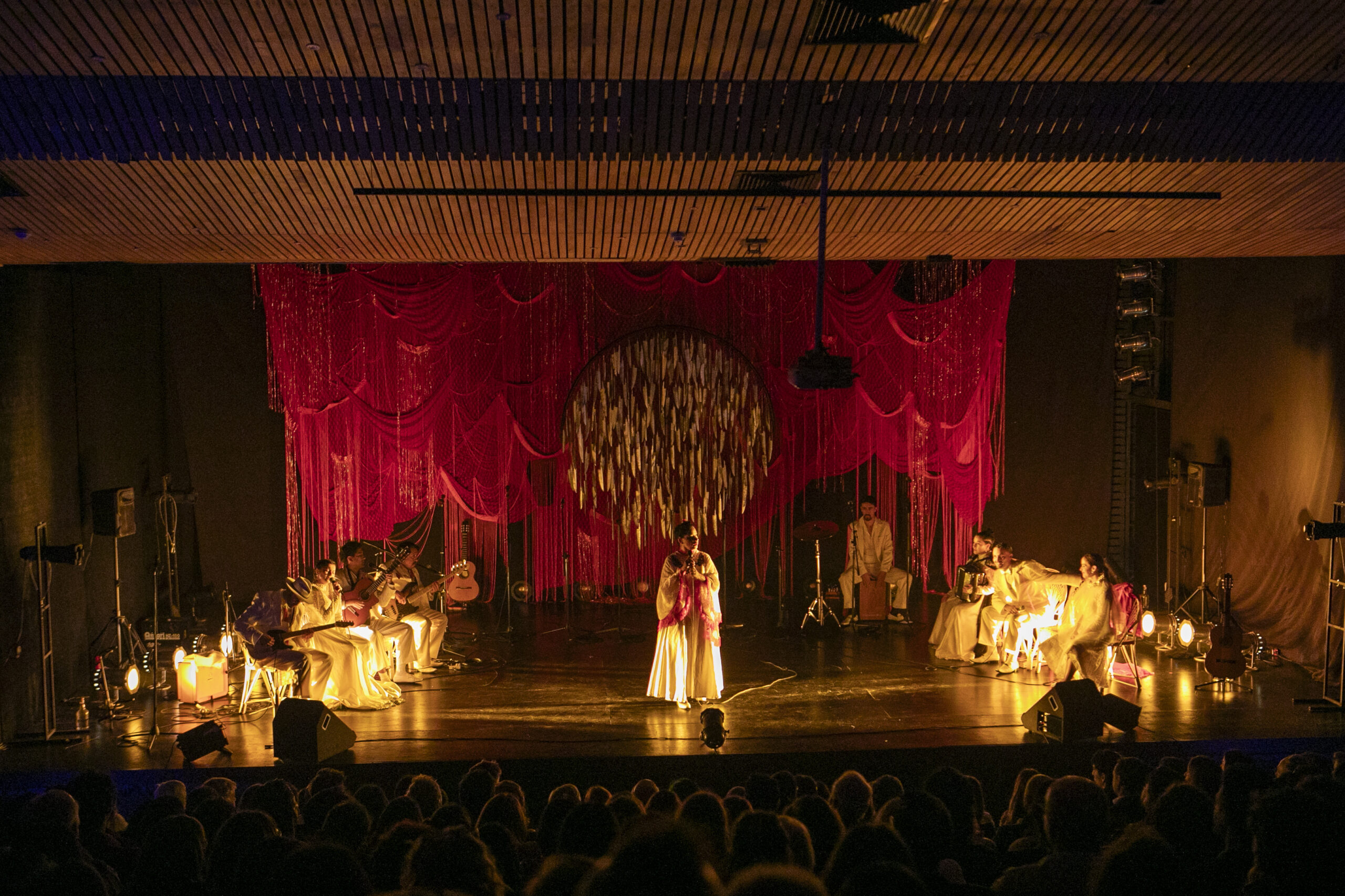 Reconociendo las afinidades entre el universo artístico de García Lorca y figuras fundamentales de la cultura chilena como Violeta Parra y Margot Loyola, la propuesta recoge esa intensidad poética en una puesta escénico-musical que funde teatro y canto en una experiencia de resonancia colectiva. La tragedia lorquiana dialoga así con sonoridades de raíz chilena, instalando la historia en un territorio simbólico cercano al público local.