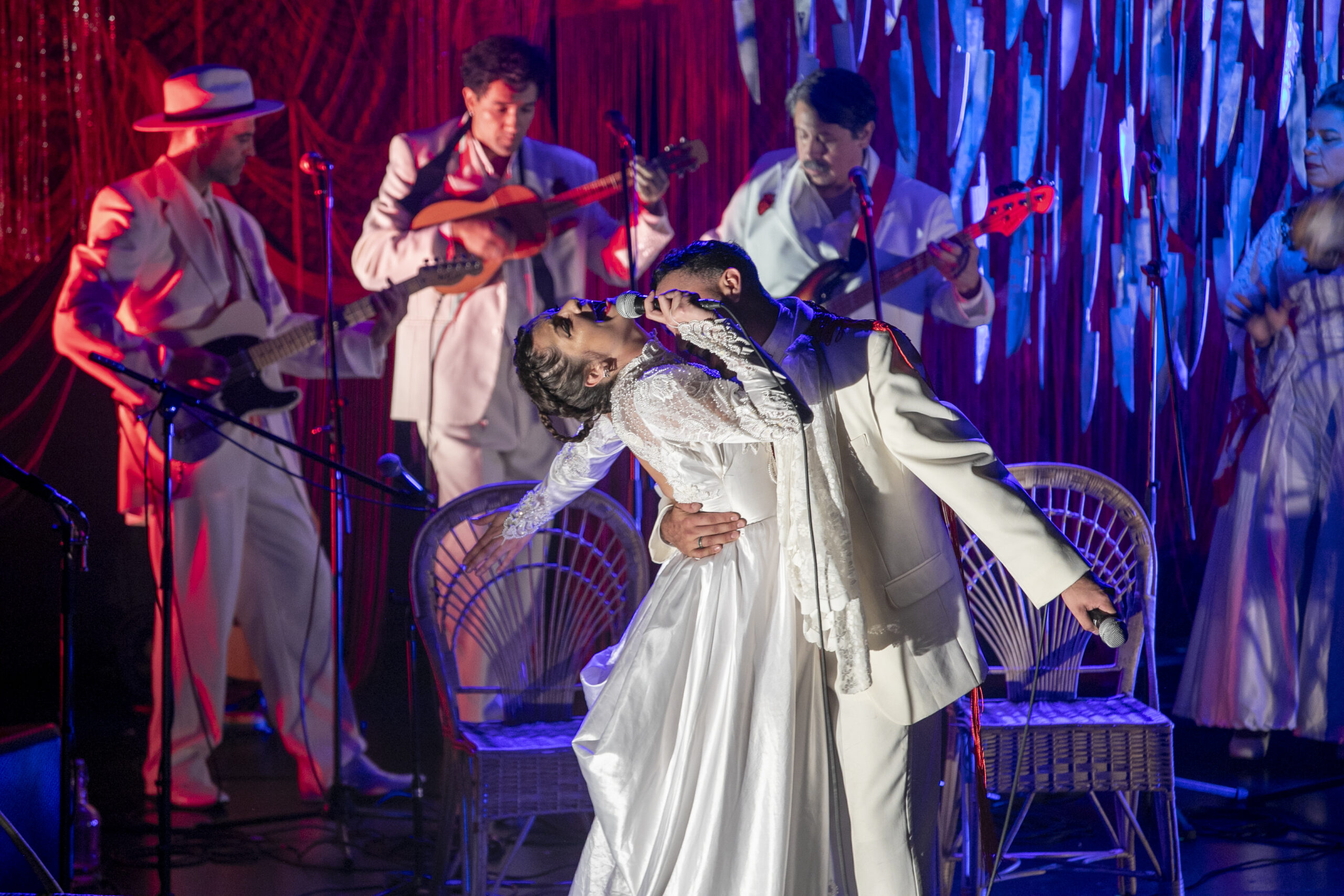 La tragedia lorquiana narra la historia de dos amantes que huyen durante una boda y, atrapados por la fatalidad del honor y la venganza, enfrentan un destino trágico. La puesta en escena incorpora a un elenco de actores que también son músicos y cantantes —incluyendo a Lorena Bosch, Marcela Millie, Paulina Cortés, Gabriela Arancibia, Jorge Arecheta, Mauricio Flores, Moisés Angulo, Mario Avillo y Juan Pablo Villanueva— favoreciendo una estética de cancionero dramático donde la música y la poesía se entrelazan como elementos estructurales del espectáculo.