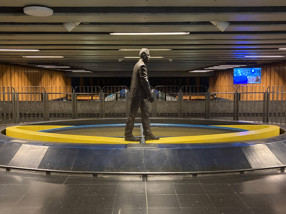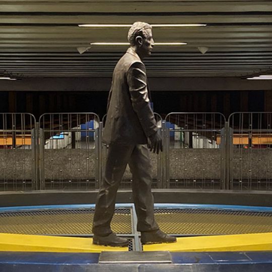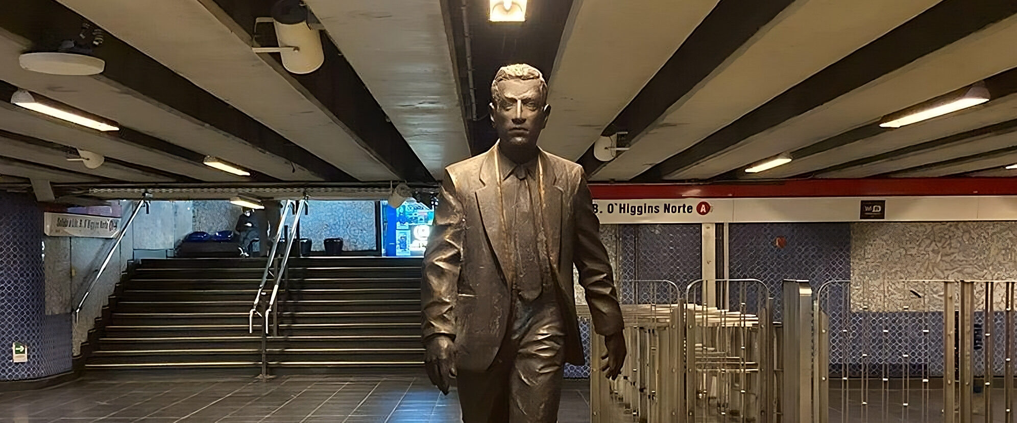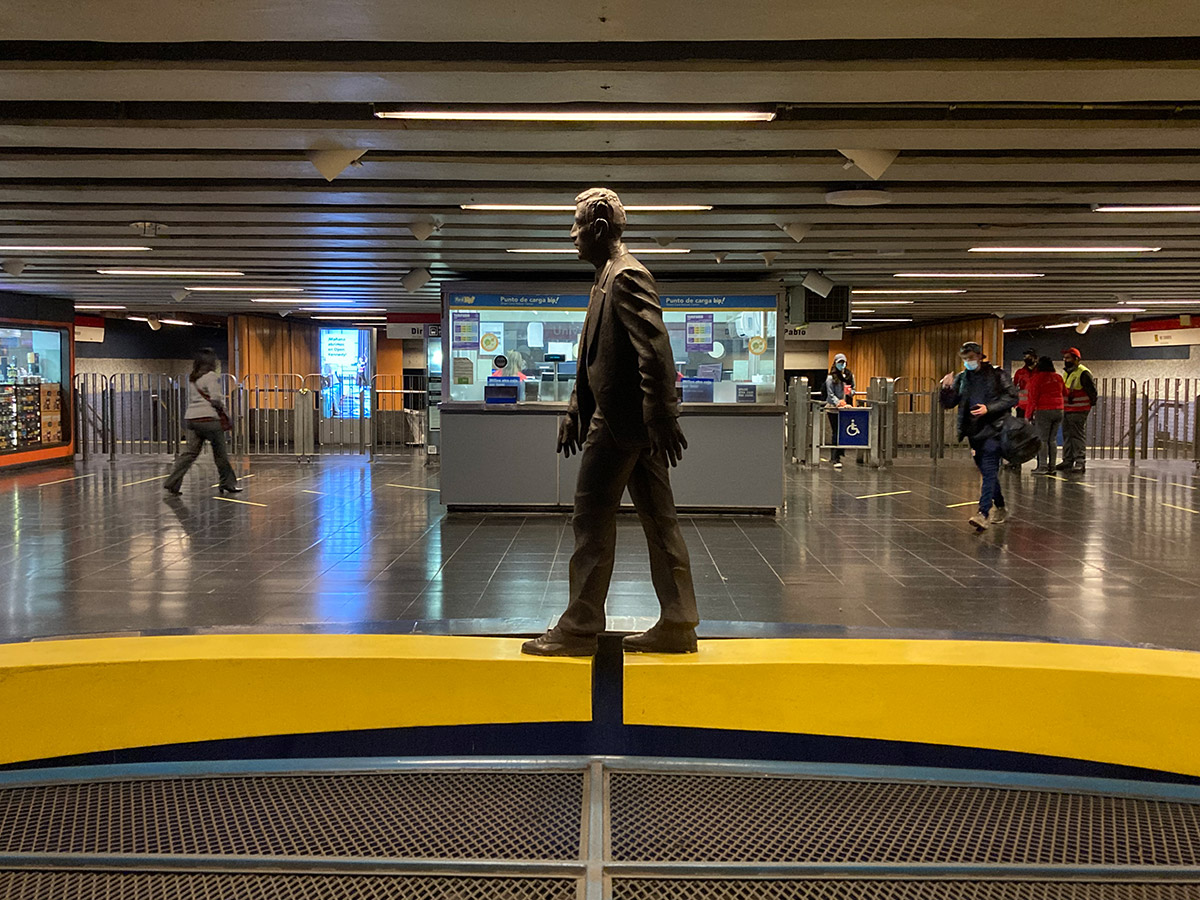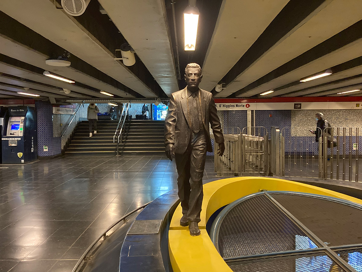 “Osvaldo Peña ha marcado a la ciudad de Santiago con la presencia paradojal de sus caminantes. Vestidos o desnudos; de lustre metálico o encendido color amarillo, la presencia de aquellos personajes, enigmáticos siempre, plantea interrogantes varias y sugiere más de una lectura (…) Metal, fibra de vidrio o madera son -en las manos del artista- vehículos para articular unos relatos que sugieren metáforas sobre la existencia, interpelan el presente y aprovechan las condiciones del emplazamiento, de manera muy específica. Algo particularmente notorio en obras como “El Puente” y “El Viaje”, emplazadas en las estaciones del metro Baquedano y Universidad Católica, respectivamente”.