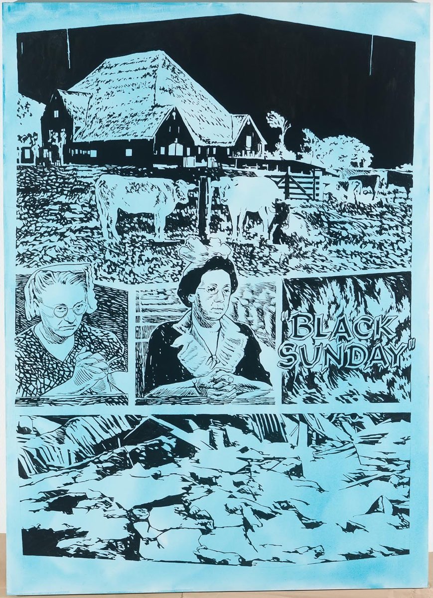 Quedan todos invitados a sumergirse y dejarse llevar por este delirante conjunto de dibujos y pinturas, que ficcionan el eclecticismo histórico de los últimos 40 años, cruzando política, arte y espectáculo tanto en Chile como en Estados Unidos.