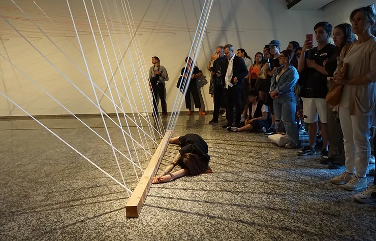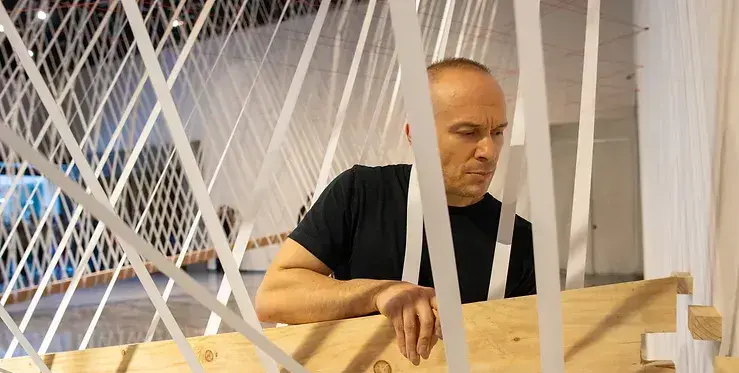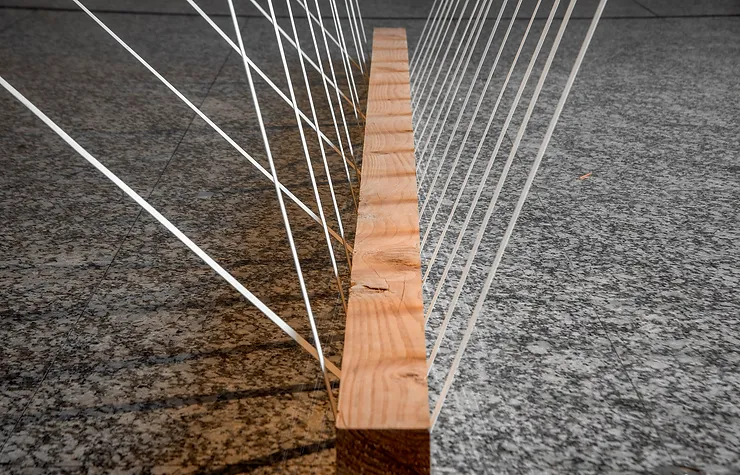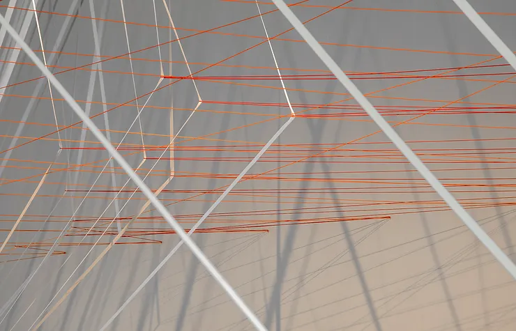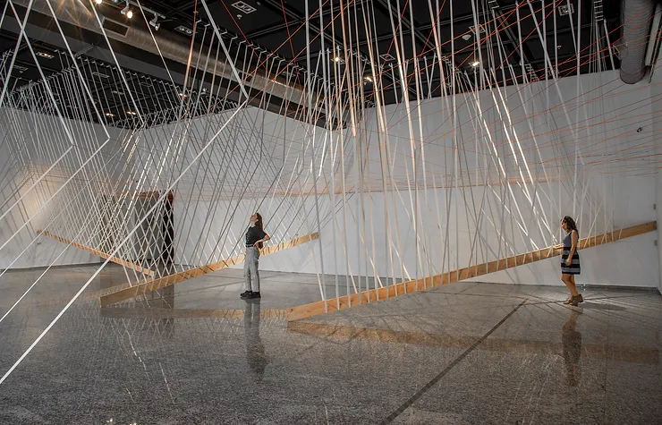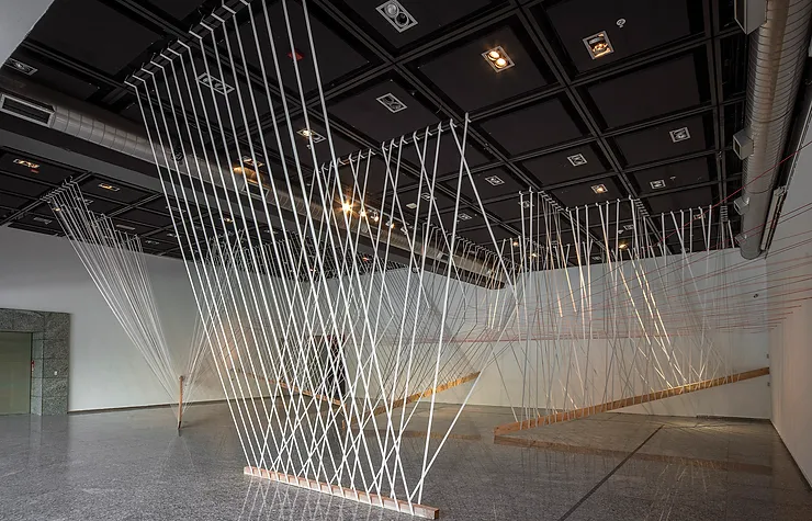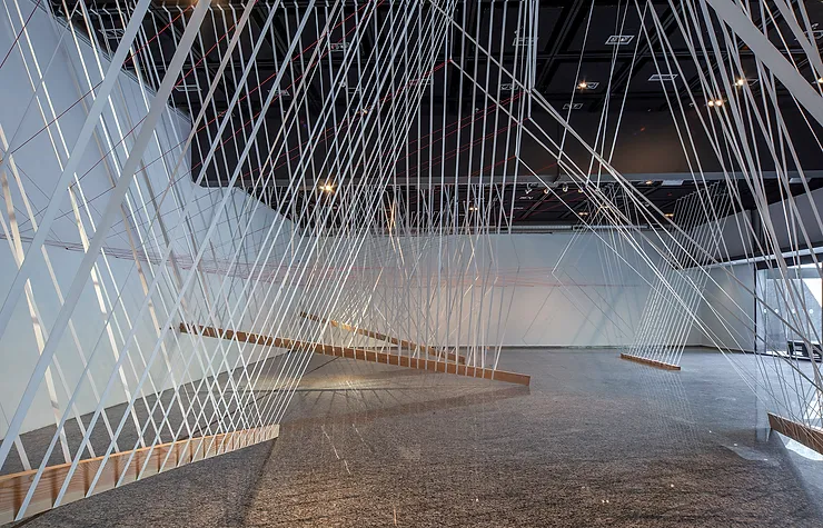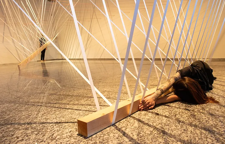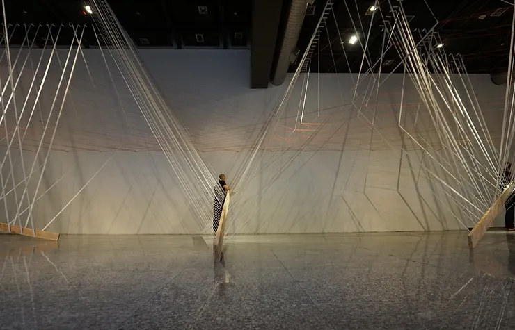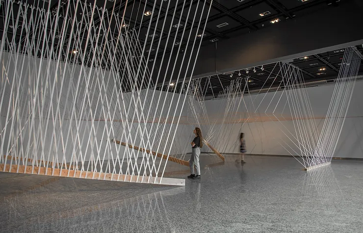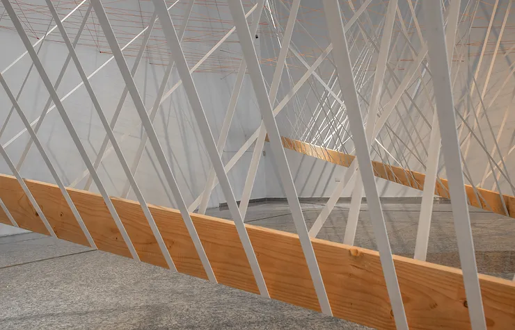 • Materialidad: Bandas elásticas y cuerdas, cinco vigas.